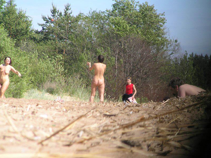 Blonde Russian nudist flashes the cameraman