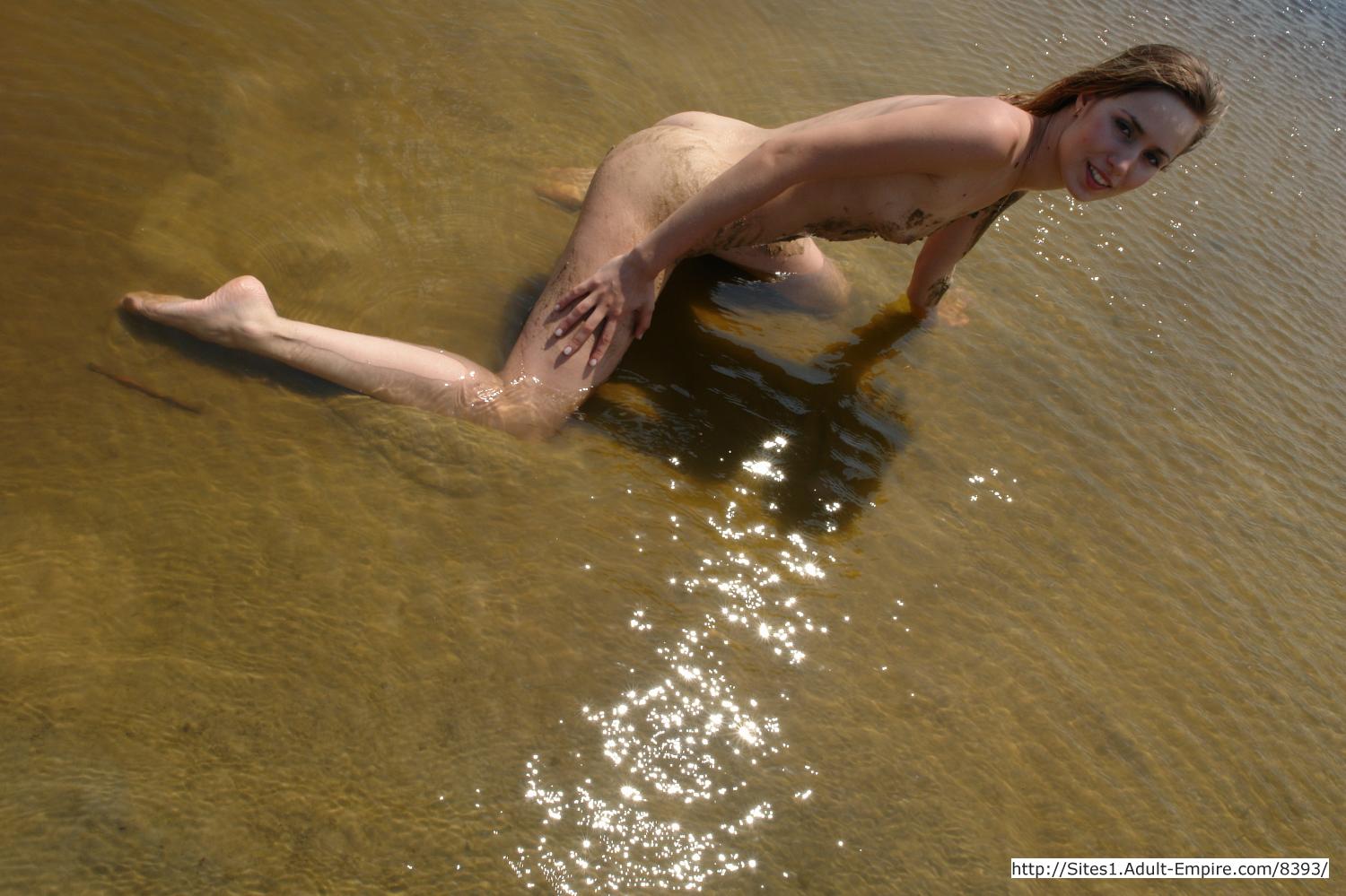 Hot looking female nudist having nude fun in the warm water of the lake