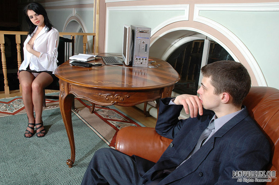Nasty teaser flashing her white panties under hose before hardcore fucking